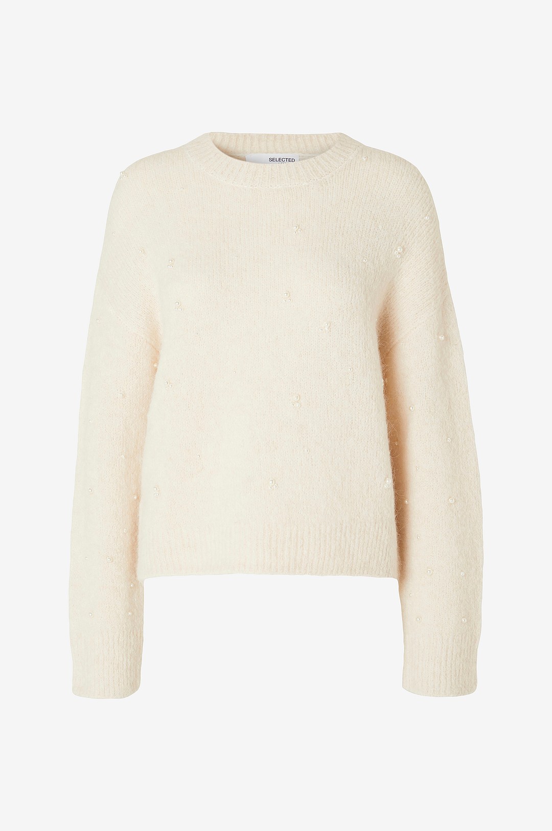 Selected FEMME - Tröja slfGabella LS Pearl Knit - Beige