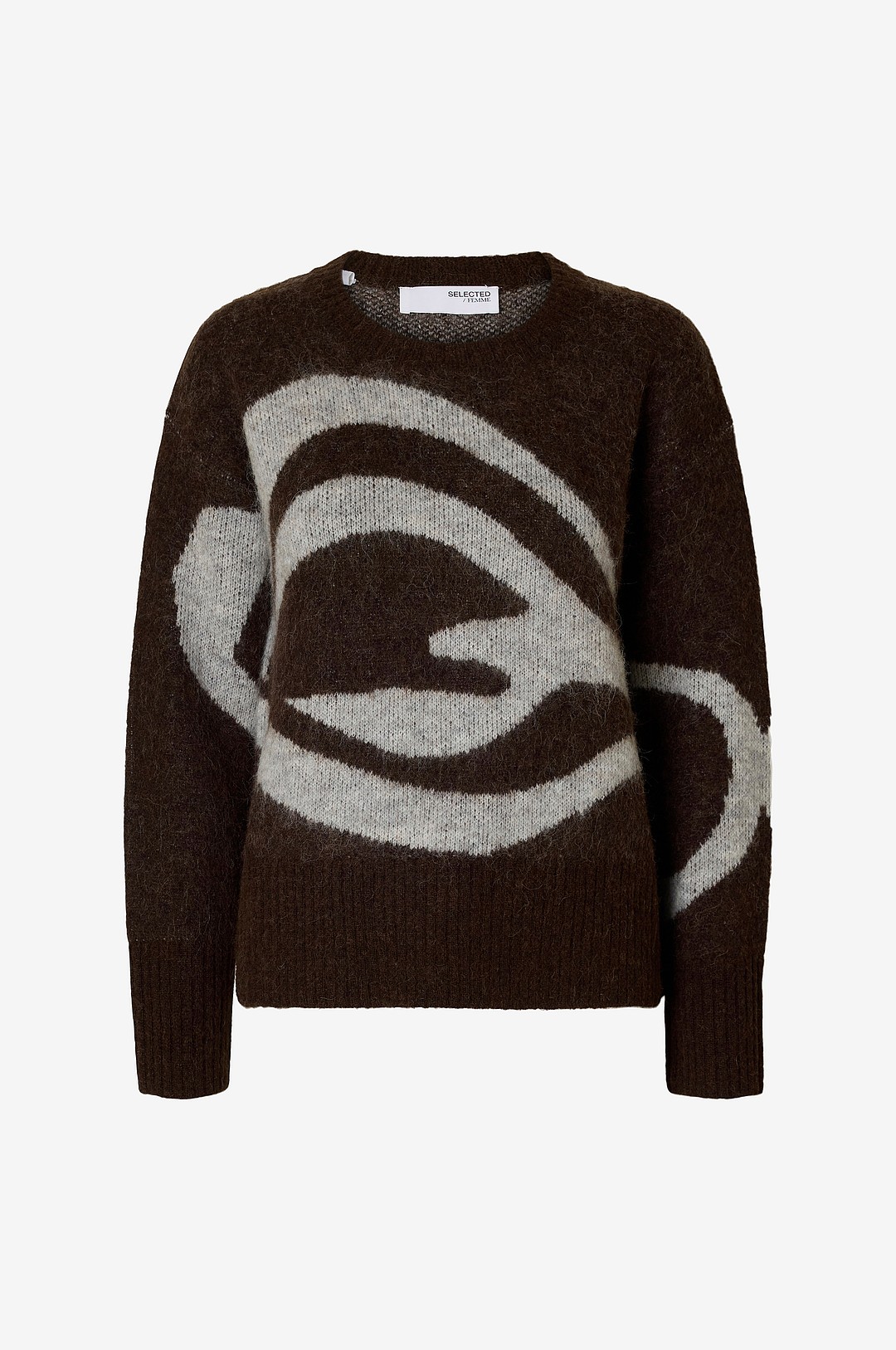 Selected FEMME - Tröja slfAlva Swirl LS Knit O-neck - Brun