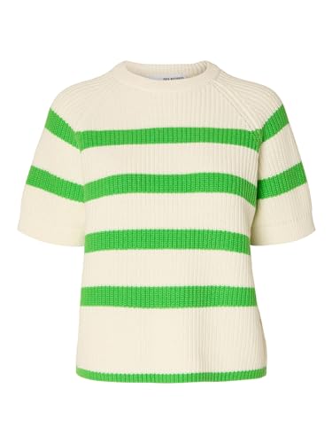 SELECTED FEMME Damer Slfbloomie Ss Knit O-Neck Noos tröja, Snövit/ränder: klassisk grön, XS
