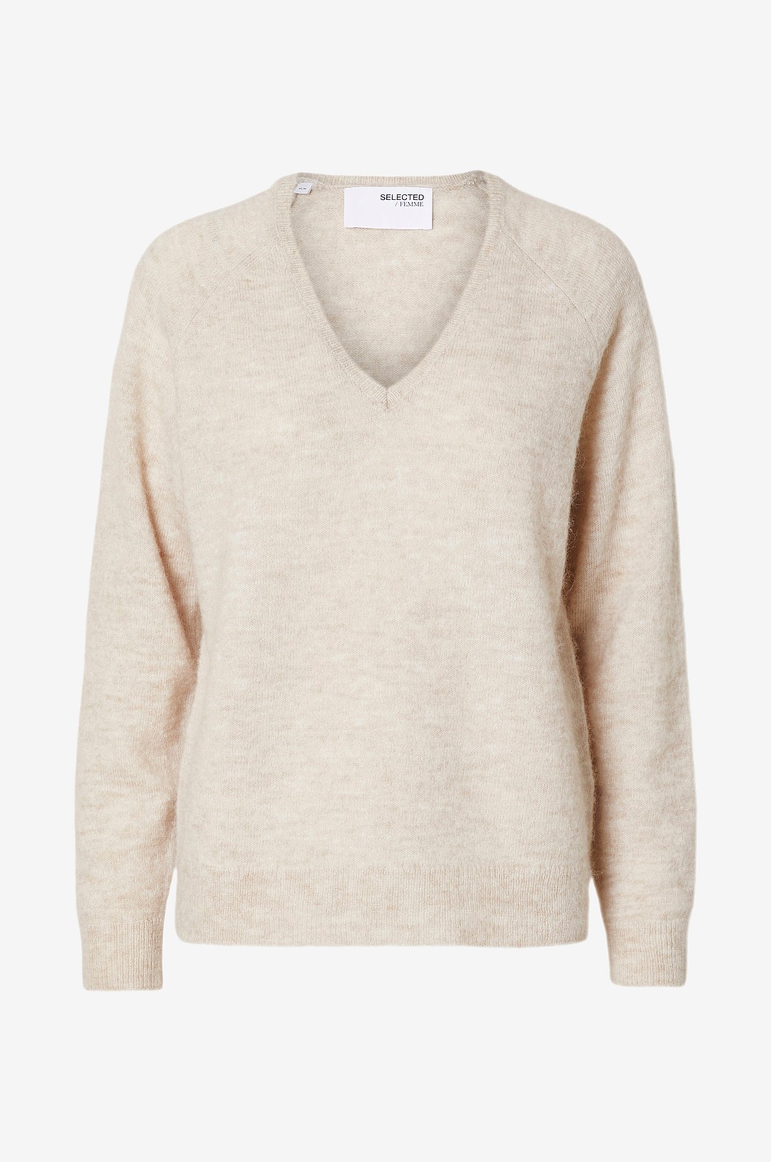 Selected FEMME - Tröja slfLulu New LS Knit V-neck B - Beige
