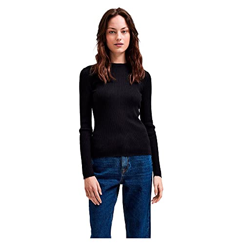 SELECTED FEMME Kvinnors SLFLYDIA New Rib LS stickad O-hals B NOOS tröja, svart, S