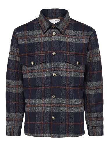 SELETED HOMME Herr Slharchive Overshirt Noos skjortjacka, Marinblazer/kontroll: grå/henna, M
