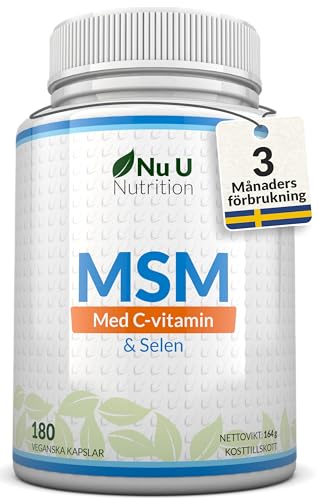 MSM 1 200 mg - 180 Kapslar - 3 Månaders Förbrukning- Metylsulfonylmetan plus C-vitamin och Selen – Hög Styrka MSM