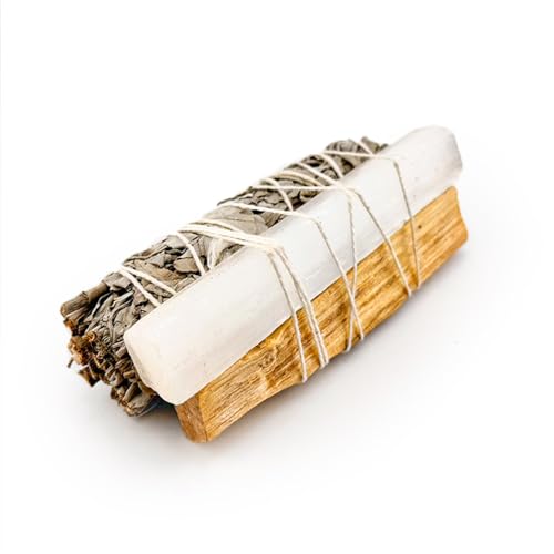 AROMASENSES | Salvia White Atadillo + Natural Santo Stick + Selenit | Naturlig vit salvia giftfri, miljövänlig | Energirengöringssats för hem och mer utrymme | skydd och läkning