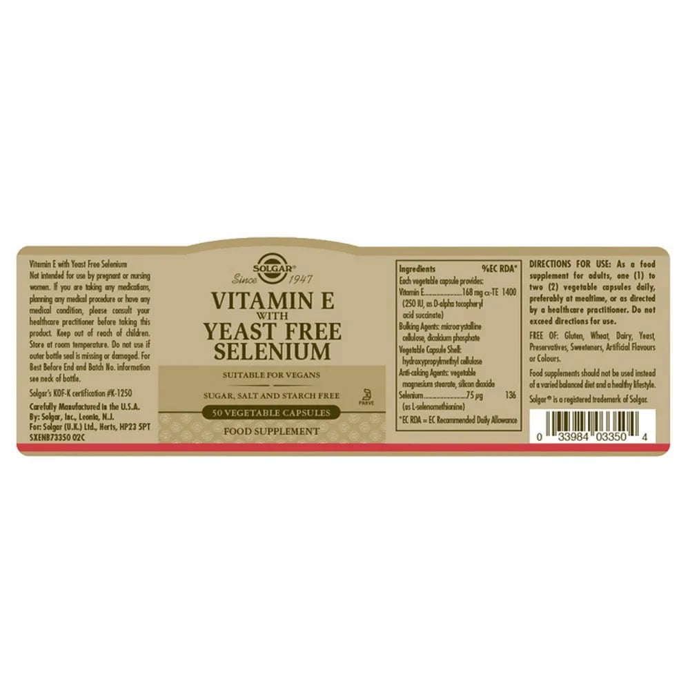 Solgar Vitamin E With Yeast Free Selenium Vegetable 50 Kapslar