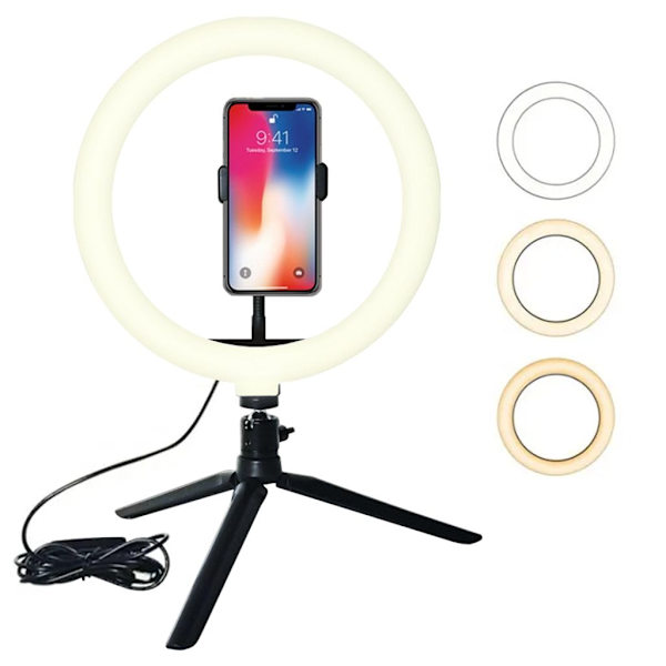 TikTok Dimbar Ring Light Selfie Bordslampa - Vit