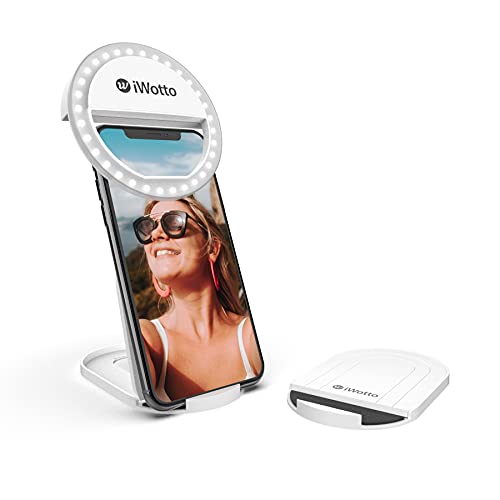 iWotto LED Mobile Ring Light med stativ - 2 lägen och 3 vita ljusintensiteter - Ring Light för Selfie, TikTok - Ring Light USB-uppladdningsbart - 36 LED:s universellt för smartphone, surfplatta, PC - Vit