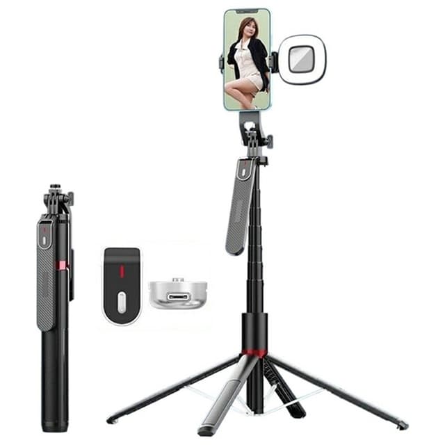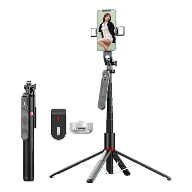 Bärbar Selfiestick Bluetooth med Dubbel V2 Fill Light P185mini