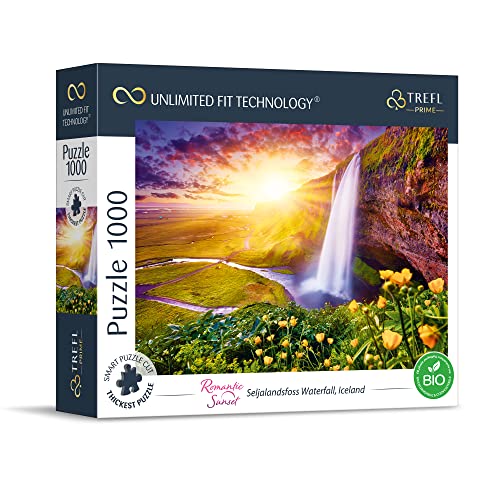 Trefl Prime-Puzzle UFT Romantic Sunset:Seljalandsfoss Waterfall, Iceland-1000 bitar - tjockaste kartongen, BIO, isländskt landskap, kreativ underhållning för vuxna och barn över 12 år