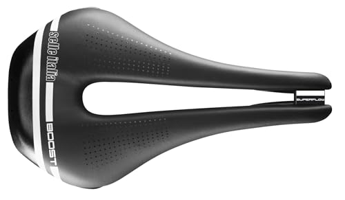 Selle Italia - Novus Boost TM Superflow, Wyczynowe Siodełko Rowerowe z Szerokim, Zakrzywionym Siedziskiem i Dodatkową Wyściółką, o Lekkiej Konstrukcji z Technicznej Mikrofibry - Czarne - S3