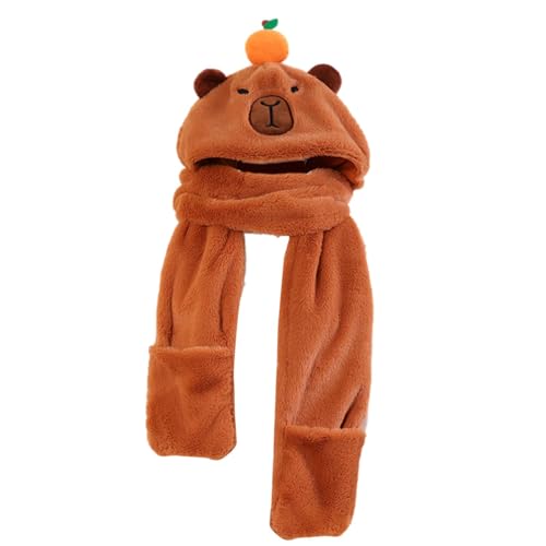 Capybara-hatt, söt, tecknad film, söt öronmössa, halsduk-set, mössa, 3-i-1, vintermössa, i form av capybara, söt, present till födelsedag, semester, flerfärgad, Capybara modell, flerfärgad, Capybara
