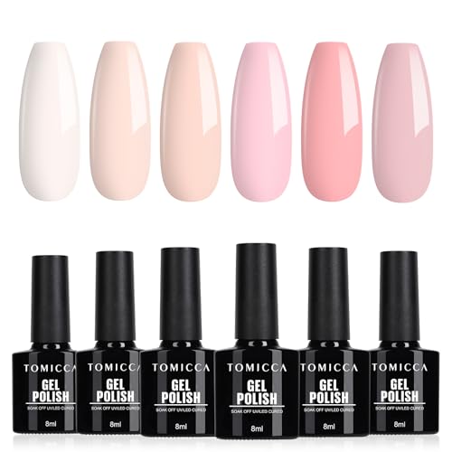 TOMICCA 6 Colors Semi Permanent Nail Polish Pink Nude White Set Nail Polish Gel Soak UV/LED Gift Non-toxic and Long Lasting for Beginners Nail Art Salon DIY Home,10ml