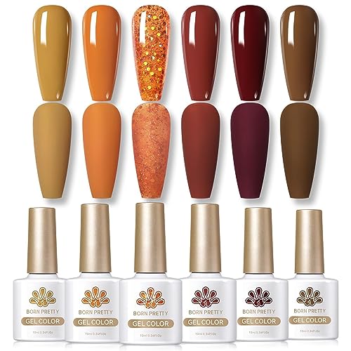 BORN PRETTY Semi permanent brun lack, 10 ml 6 färger höst vinter karamell kaffe vinröd glitter orange semi permanent UV-nagellack halvpermanenta geler härdade hälsosamma och hållbara