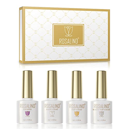 ROSALIND Gel Nagellack Base Top Coat 6ml Set Semi-permanent Nagellack för UV LED Lampa Perfekt För Att Designa Din Egen Manikyr I En Hemmasalong