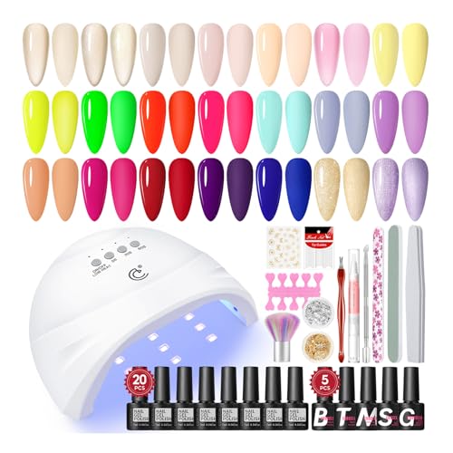 PEACECOLOR Nail Kit UV Komplett med UV-lampa, Semi Permanent Nagellack 20 Färger, Bas och Top Coat+Top Coat Glitter och Matt, Nail Art Kit Nybörjare Set
