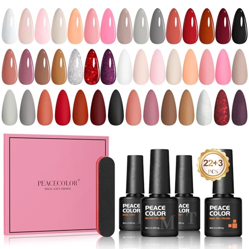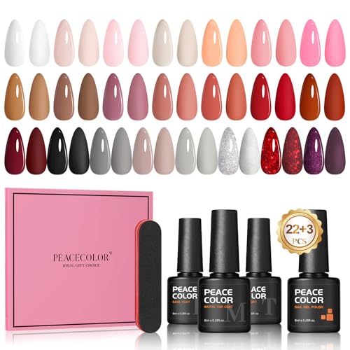 PEACECOLOR Kit för Semi Permanent Nagellack, 22 Färger Komplett UV Nail Gel Nagelkit med 4PCS Bas och Top Coat Glans Matt och Glitter, UV Nagel Lampa, Gel Nagelkit Present för Kvinnor