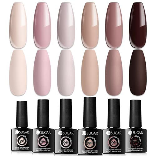 UR SUGAR Semi Permanent Lack Nudee Beige, 6 färg nagellack gel U V semi permanent naken rosa nagellack halvpermanenta geler beige brun fransk manikyr nagelkonst 6 flaskor kit