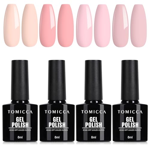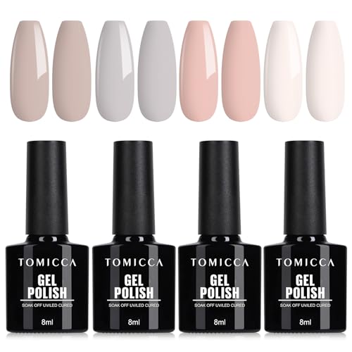 TOMICCA 4 Colors Semi-Permanent Nail Polish UV Pink Nude White Set Nail Polish Gel Soak Off UV/LED Non-toxic and Long Lasting Gift for Beginners Nail Art Salon DIY Home,10ml