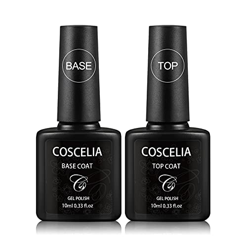 Coscelia Semi-Permanent bas-och topplack Kit 2 * 10ml Top Coat & Base Coat UV LED Soak off Nail Kit Semi-Permanent Gel nagellack för manikyr och pedikyr Kit