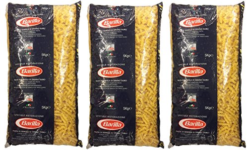 3 x Barilla Durum Wheat Semolina Pasta Speciale Ristorazione Special Catering Fusilli n°98 italiensk pasta förpackning med 5 kg kort pasta