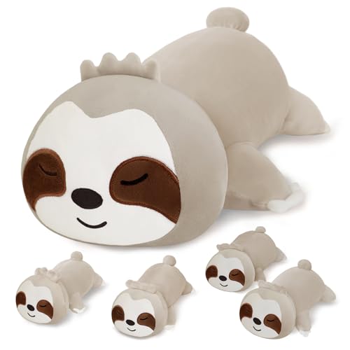 SQEQE Sloth Plushies fyllda djur med 4 spädbarn, söt sengångare plysch kudde mjuk leksak födelsedag presenter för flickor pojkar