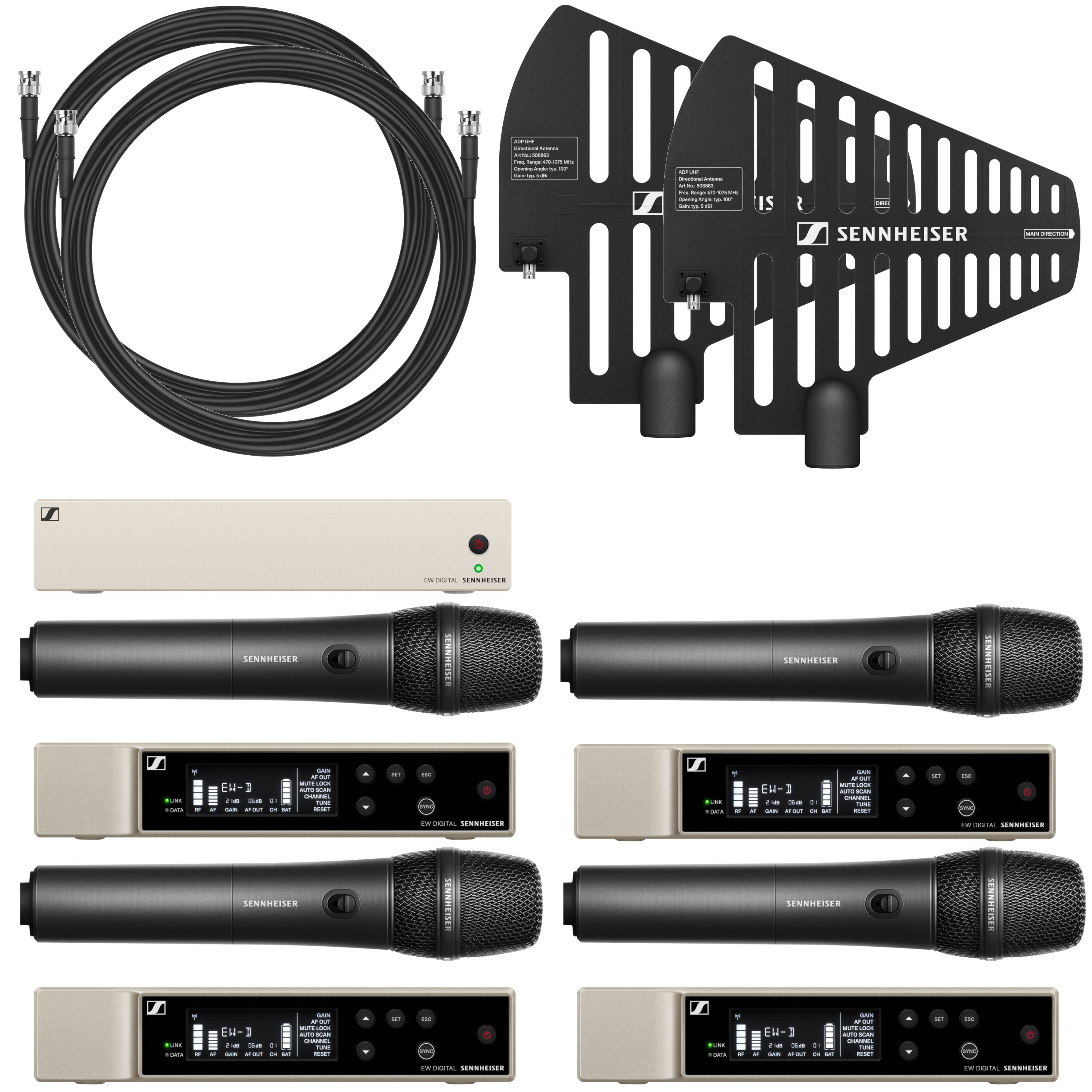 Sennheiser 4 x EW-D 835-S Set R1-6 + EW-D ASA + 2 x ADP UHF Wireless Handheld Microphone System (520 - 576 MHz)