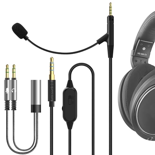 Geekria QuickFit Boom Mic hörlurskabel för spel och möte, kompatibel med Sennheiser HD-599 579 569 559 569 559 558, 2,5 mm ersättningssladd med mikrofon och volym/tyst kontroll (6 fot)