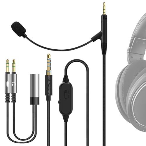 Geekria Boom Mic-kabel kompatibel med Sennheiser HD 620S/599/598/505, 2,5 mm jack, nylonflätad ersättningskabel med boom-mikrofon och volym-/mute-kontroll för gaming & möten (5,6 ft)