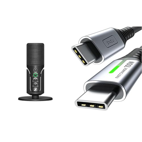 Sennheiser profil USB-mikrofon med bordsstativ – Plug & Play-design – svart (700065) & INIU USB C till USB C-Kabel, 100W PD QC 4.0 20V/5A USB C Snabbladdningskabel, nylonflätad mobilladdare