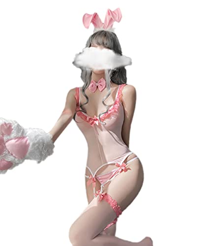 SNOMYRS Kanin anime underkläder för kvinnor genomskinlig nät sexig kanin senpai kostym underkläder bodysuit one piece strumpor set