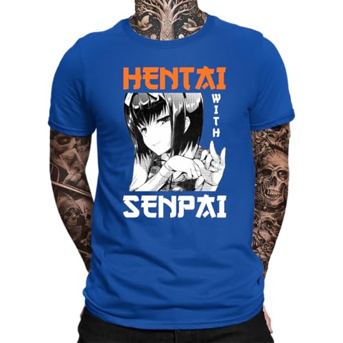 Hentai with Senpai – meme manga anime herr-t-shirt, blå, L