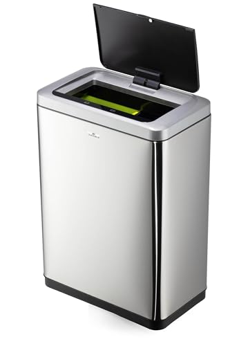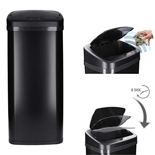 KESSER® Sensor soptunna kök 52 L | Automatisk med rörelsesensor soptunna och mjukt stängningslock | sopbehållare med touch-kontrollpanel och sensor | LCD-display | rostfritt stål | inklusive svart