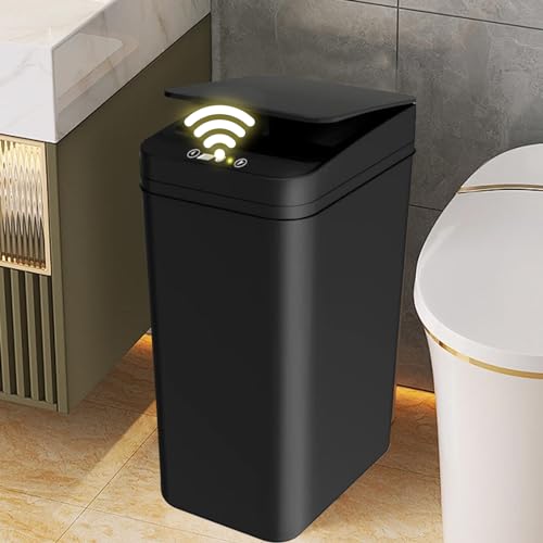Kamanan Automatisk soptunna, 12 l papperskorg med sensor papperskorg kontor papperskorg elektrisk locksensor för kök, badrum, badrum eller kontor (batterier ingår ej) (svart)