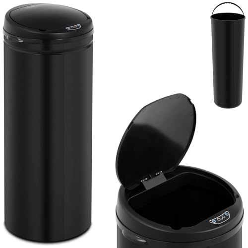 Automatisk sensor soptunna 30 - 60 liter med soppåsfäste, målat stål, rektangulär eller rund, automatisk öppning/stängning - Automatisk kökssoptunna, Sensor-papperskorg, Soptunnor, kökskorg med sensor (Svart, 50 liter, rund)