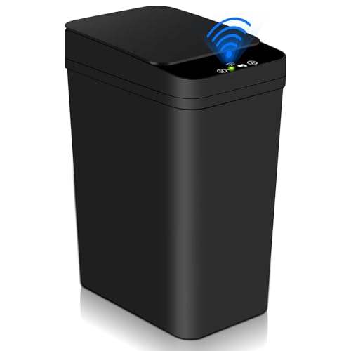 Kamanan Sensor soptunna, 12 l automatisk soptunna med smart sensor, smal soptunna med lock kontaktlös soptunna för kök, badrum, badrum eller kontor (svart)
