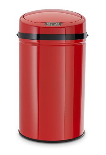 Echtwerk kontors-/badrums-/kosmetikaavfallskorg, papperskorg med sensor, touchless papperskorg, elektrisk soptunna, infraröd rörelsesensor, rostfritt stålstomme, kapacitet 9 liter, INOX röd