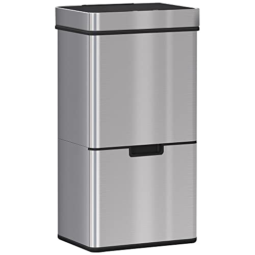 HOMCOM Soptunna med sensor 72 l avfallssepareringssystem 3 fack rostfritt stål silver 42 x 30 x 81 cm