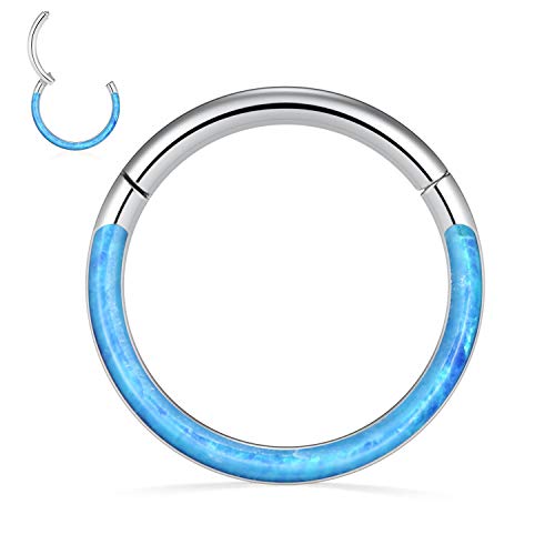 AROWRO 18 g 16 g 14 g näsbygel septum clicker daith örhängen CZ opal näsringar brosk daith mussla helix tragus piercing smycken 316L kirurgiskt stål, Opal, opalsilver, stål