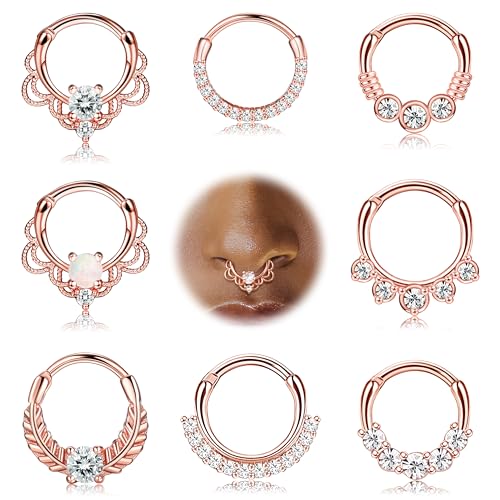 MILACOLATO 8 st 16 g septum klickerring rostfritt stål CZ opal brosk helix tragus ring daith örhängen näsringar gångjärn segment klicker ring piercing smycken 10 mm, Rostfritt stål, opal, metall
