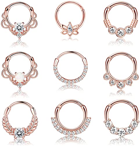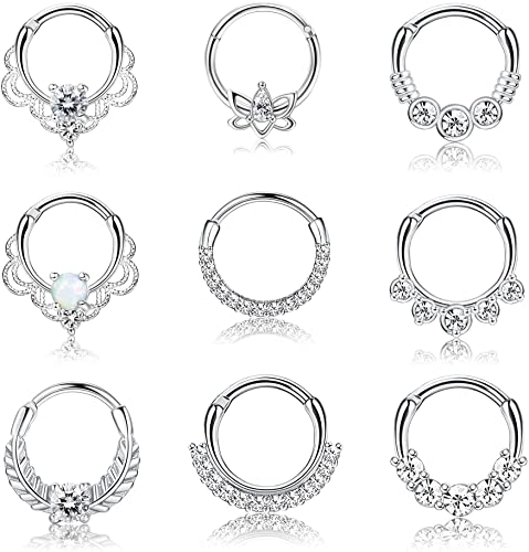 CASSIECA 8–9 st 16 g septum-ringar, opal, daith-örhängen, ring, näsringar i 316L rostfritt stål, CZ, brosk, helix, tragus, örhängen för septum, klicker, piercingsmycken, Opal Rostfritt stål