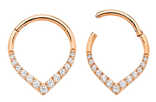 Adramata Daith örhängen 16G rostfritt stål brosk helix tragus näsa ring piercing smycke 8 mm 10 mm silver guld roséguld svart pläterad CZ hopfällbar septum clicker ringar, Rostfritt stål