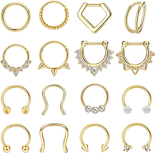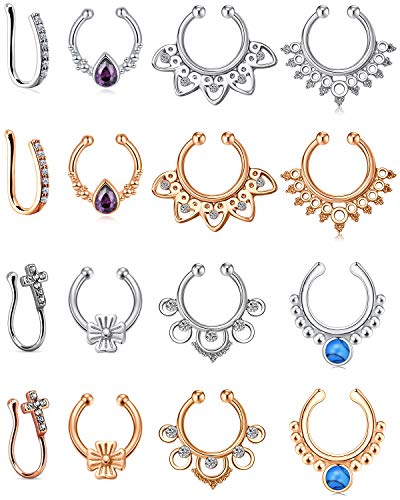 incaton Falsk septumpiercing 16 st falsk septumring rostfritt stål falsk septum näsring ringar icke-piercad klämma på septum smycken, Rostfritt stål