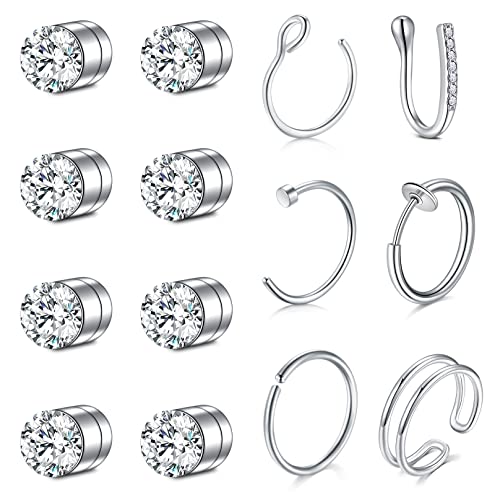 Crdifu Falsk näsa magnetisk stud ring ingen piercing falsk septum ring rostfritt stål diamant dubbar, Rostfritt stål