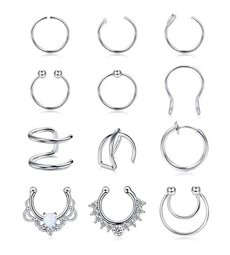 Kakonia 12 st falska näsringar ring rostfritt stål falsk septum piercing klämma på näsan septum ring falsk icke-piercade näsringar örhängen smycken, Rostfritt stål