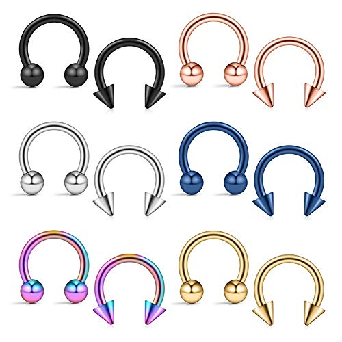 Crdifu 12 st rostfritt stål 14 mätare hästsko näsring ring cirkulär skivstång septum läpp-piercing smycken, Rostfritt stål,