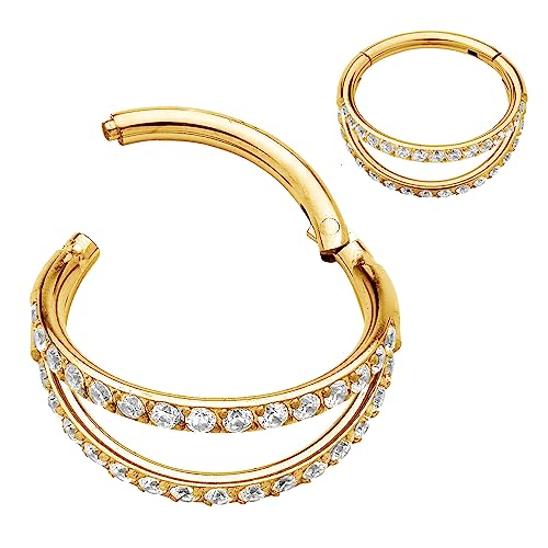 (8mm 16G) Titanium Double Gem Gångjärn Segment Ring Helix Tragus Septum Clicker Nose Lip Hoop Unisex örhänge Body Piercing Smycken