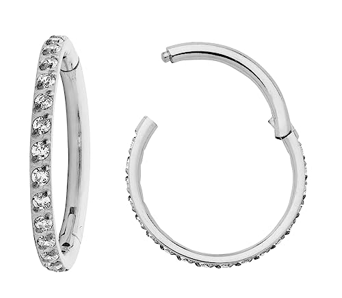 (12mm) Titanium Unisex Gem Gångjärn Segment Ring Helix Tragus Septum Clicker Nose Lip Hoop Örhänge Body Piercing Smycken