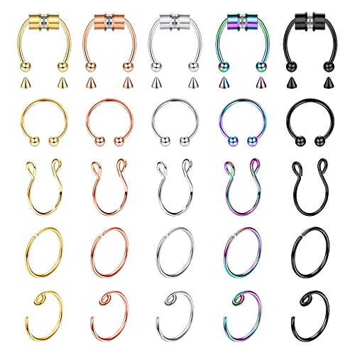 YADOCA 15–30 stycken falska septum ringar magnetiska septum för kvinnor män rostfritt stål näsring falsk septum näsringar ring inte piercing smycken, Rostfritt stål