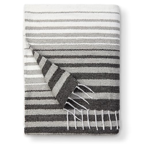Grå mexikansk filt av Laguna Beach Textile Co – strand, yoga, camping eller dekorativ filt – traditionell handgjord serape – grå tulum