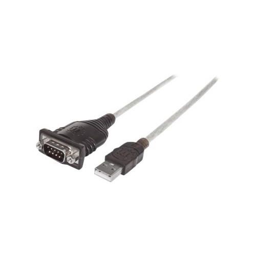 Manhattan USB-A to Serial Converter cable, 45cm, Male to Male, Serial/RS232/COM/DB9, FTDI FT232RL Chip, Black/Silver cable, Three Years Warranty, Polybag - seriell adapter - USB - RS-232